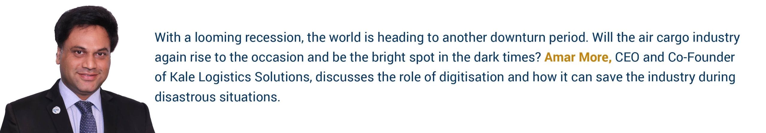 The raison detre (reason for existence) of the air cargo industry is Speed. But with cargo spending close to 85% of the time on the ground, there’s much more still to be achieved for the industry. I firmly believe that technology will be the theme of the industry going forward. Technology will transform this industry and strengthen the core reason for its existence–Speed. Speed doesn’t just mean customer satisfaction; it also means you can handle more cargo within the given physical infrastructure. So, the long-term strategy of air cargo should be digitisation for transformation.
